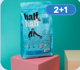 ПОКУПАЙ СУХОЙ КОРМ ДЛЯ СОБАК HALF&HALF 2 КГ ОТ 2 ШТ. ТА ПОЛУЧАЙ ЕЩЕ 1 ШТ. ТАКОГО ЖЕ ВКУСА В ПОДАРОК