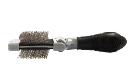 Щітка розроблена спеціально для собак і котів з кучерявою, середньою та довгою шерстю. Двостороння щітка-пуходерка не травмує шкіру, незважаючи на те, що щетина двох видів зроблена з нержавіючої сталі: вигнуті щетинки допомагають видалити ковтуни та сплутану шерсть, не пошкоджуючи її, а прямі щетинки – зробити шерсть гладкою та блискучою. Двостороння конструкція з гнучкою насадкою повторює природні контури голови і тіла вихованця, що не тільки полегшує грумінг, але також приносить задоволення вашому улюбленцю. Ергономічна ручка гарантує зручне та безпечне використання.